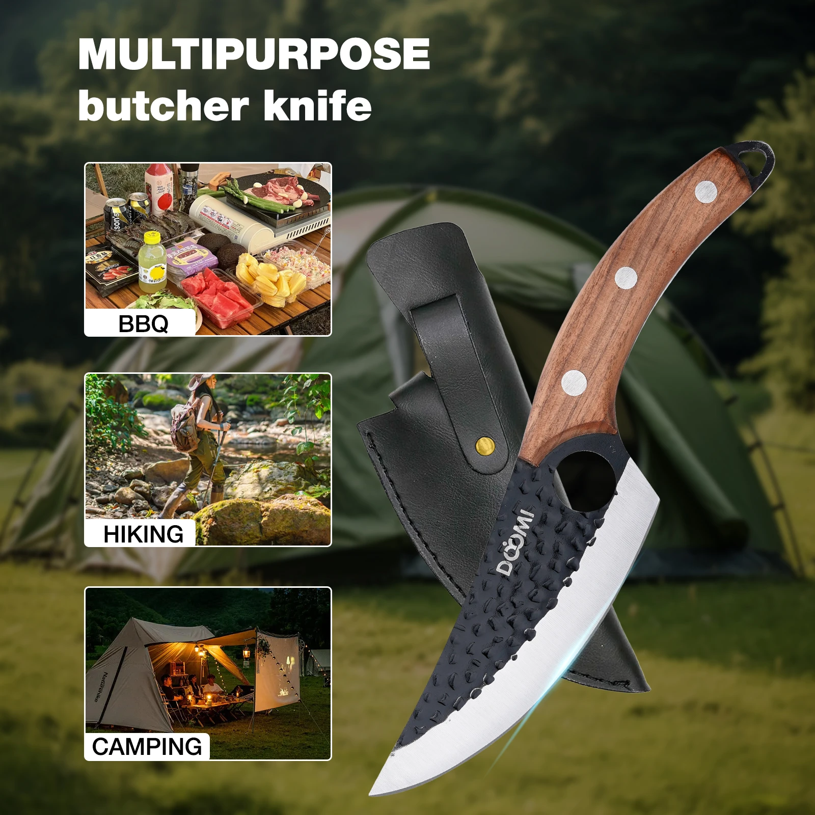 Butcher Knife, Hand Forged Serbian Chef Knife & Meat Cleaver Knife & Viking Knives, Meat Cutting Kitchen Knife Set for Home, Outdoor Cooking, Camping BBQ Men D1