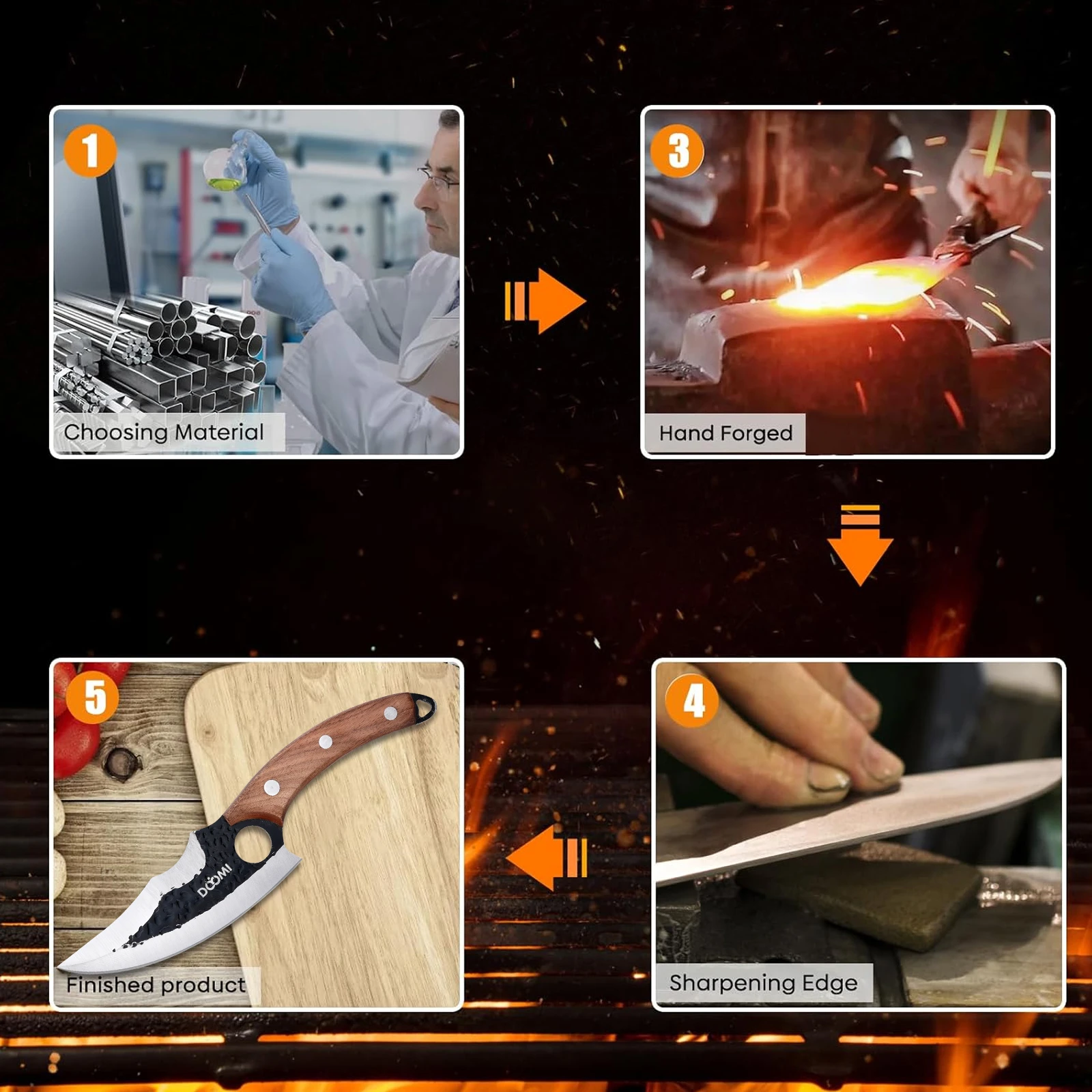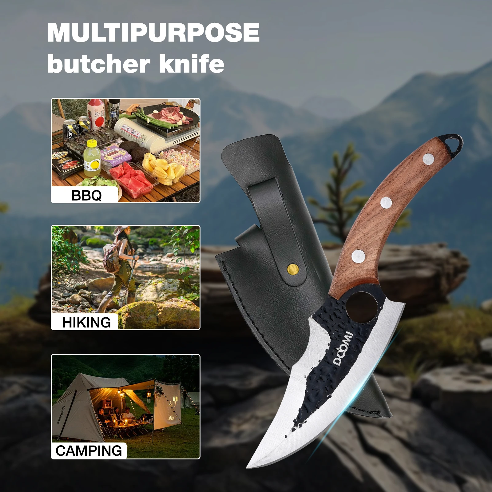 Butcher Knife, Hand Forged Serbian Chef Knife & Meat Cleaver Knife & Viking Knives, Meat Cutting Kitchen Knife Set for Home, Outdoor Cooking, Camping BBQ Men D1