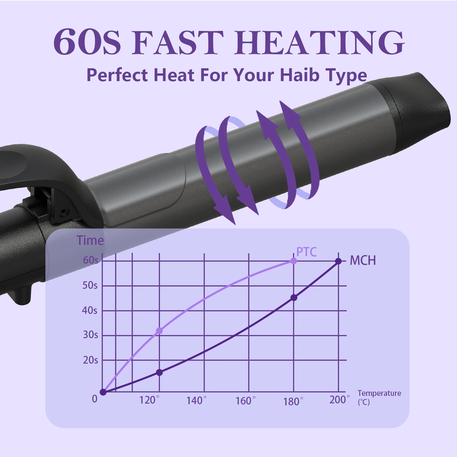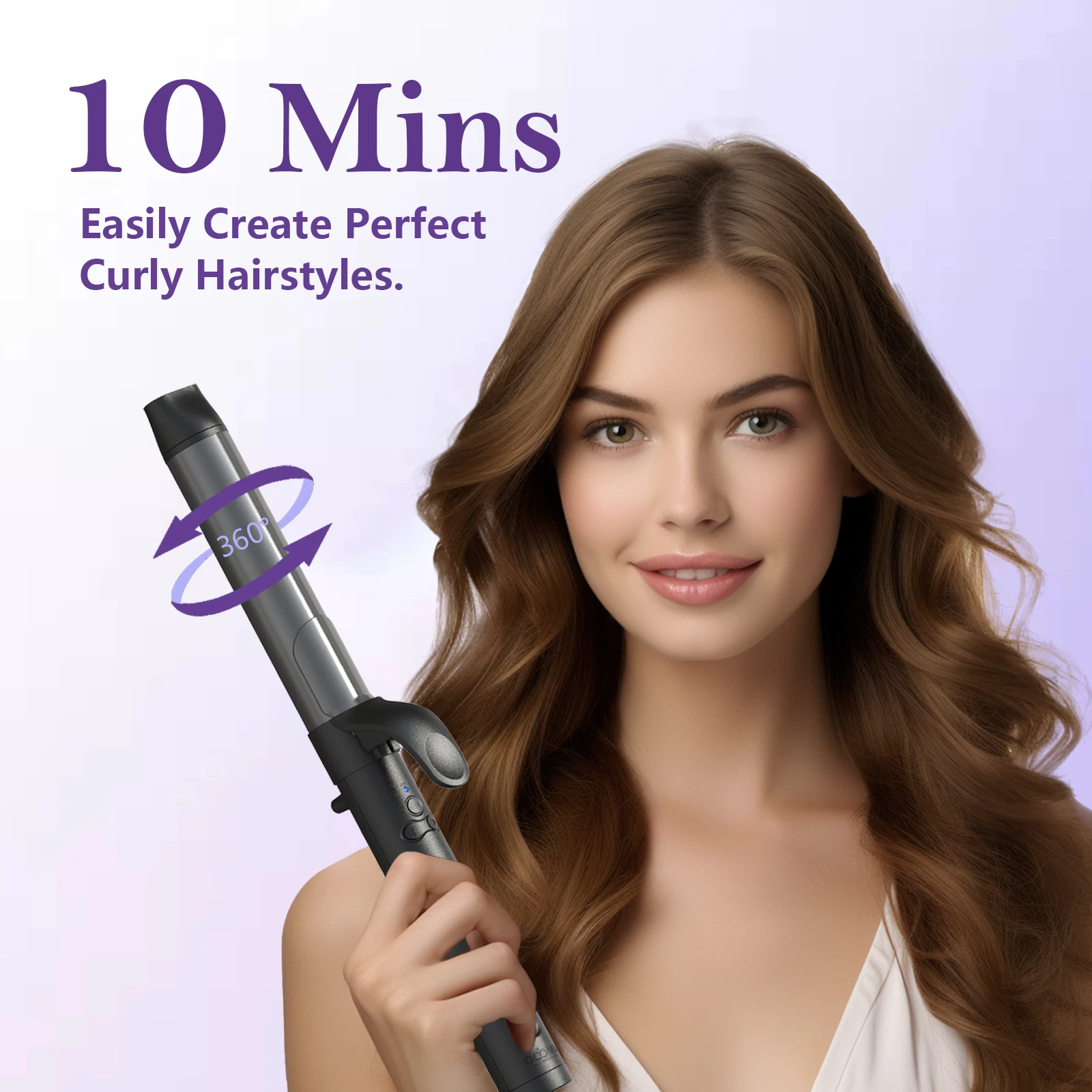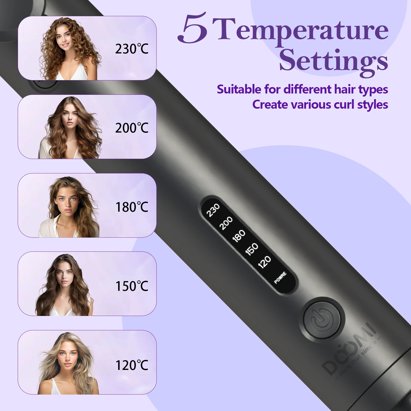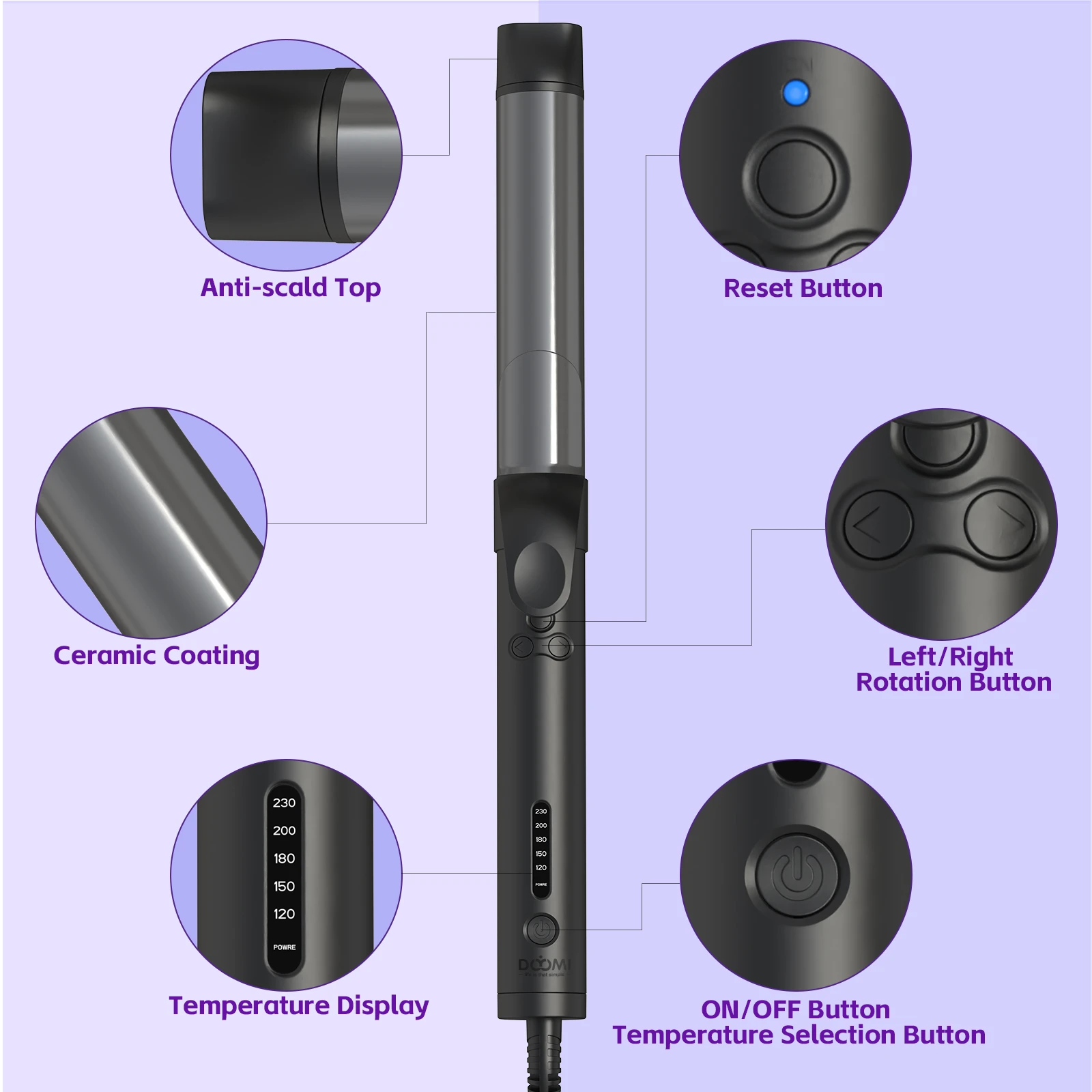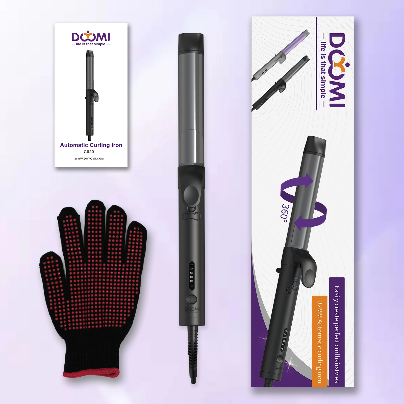 DOYOMI Hair Curing Tongs, 360°Automatic Rotating Hair Curlers, Ceramic Tourmaline Coating Large 32mm Ceramic curling iron Adjustable 5 Temper Suitable for All Hair Lengths Easy to Use