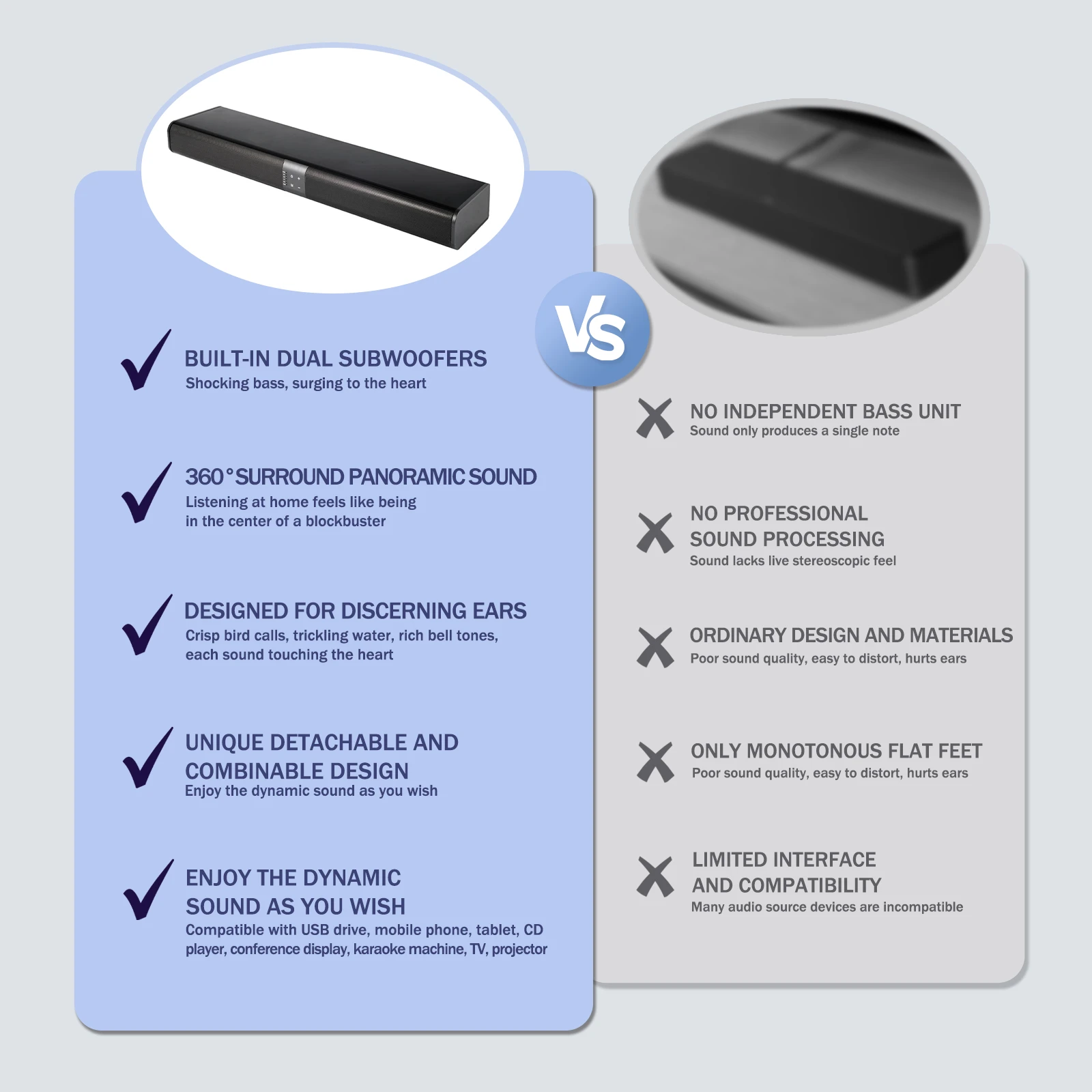 DOYOMI Sound Bars For Smart TV, Crisp Sound 31-in Wireless TV Soundbar Speakers With HDMI-ARC, Optical AUX Connection, Easy Setup, Detachable Surround Sound System For TV, PC, Projector